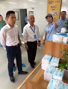 曹振雷主任等参观乐鱼体育-乐鱼登陆入口-乐鱼online(中国)保湿纸无尘车间和产品展示中心